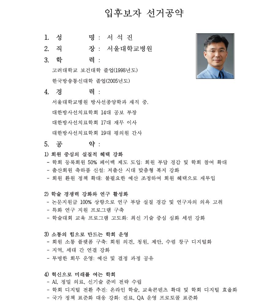 공지 20대 부회장 입후보자 선거공약 페이지 정보 작성자KOSRT 댓글0 조회65 작성일25.11.26 15:36 첨부파일 20대 선거공약서양식-기호 1번 김명호.pdf (97.6K) 3회 다운로드 20대 선거공약서양식-기호 2번 서석진.pdf (105.4K) 2회 다운로드 본문 다음글20대 부회장 입후보자 선거 포스터 25.11.26 Comment 0 댓글목록 등록된 댓글이 없습니다.